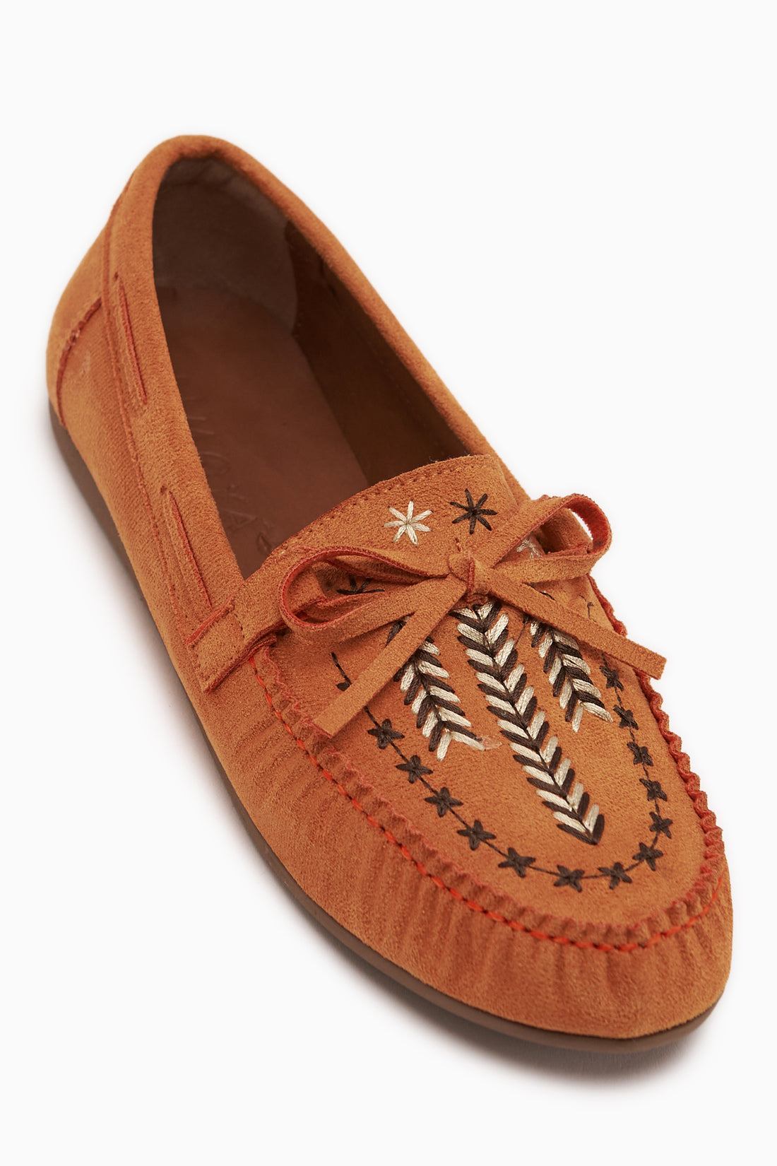 Darya Turuncu Süet Nakışlı Makosen Ayakkabı Kadın Loafer