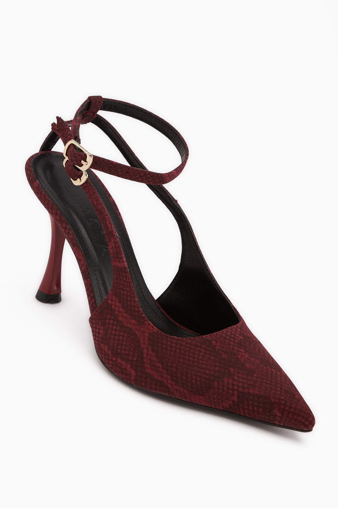 Jamie Bordo Yılan Desenli Bilekten Tokalı Kadın Topuklu Ayakkabı