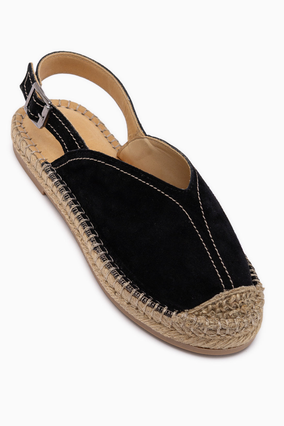 Lydia Hakiki Deri Siyah Süet Hasır Detaylı Kadın Sandalet