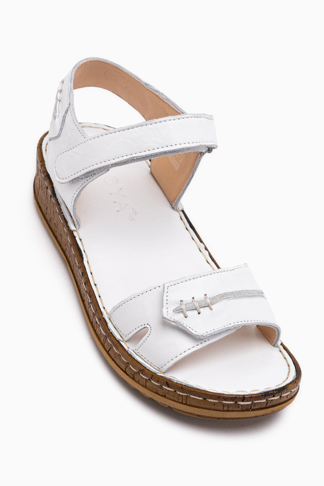 Leone Hakiki Deri Beyaz Kadın Sandalet
