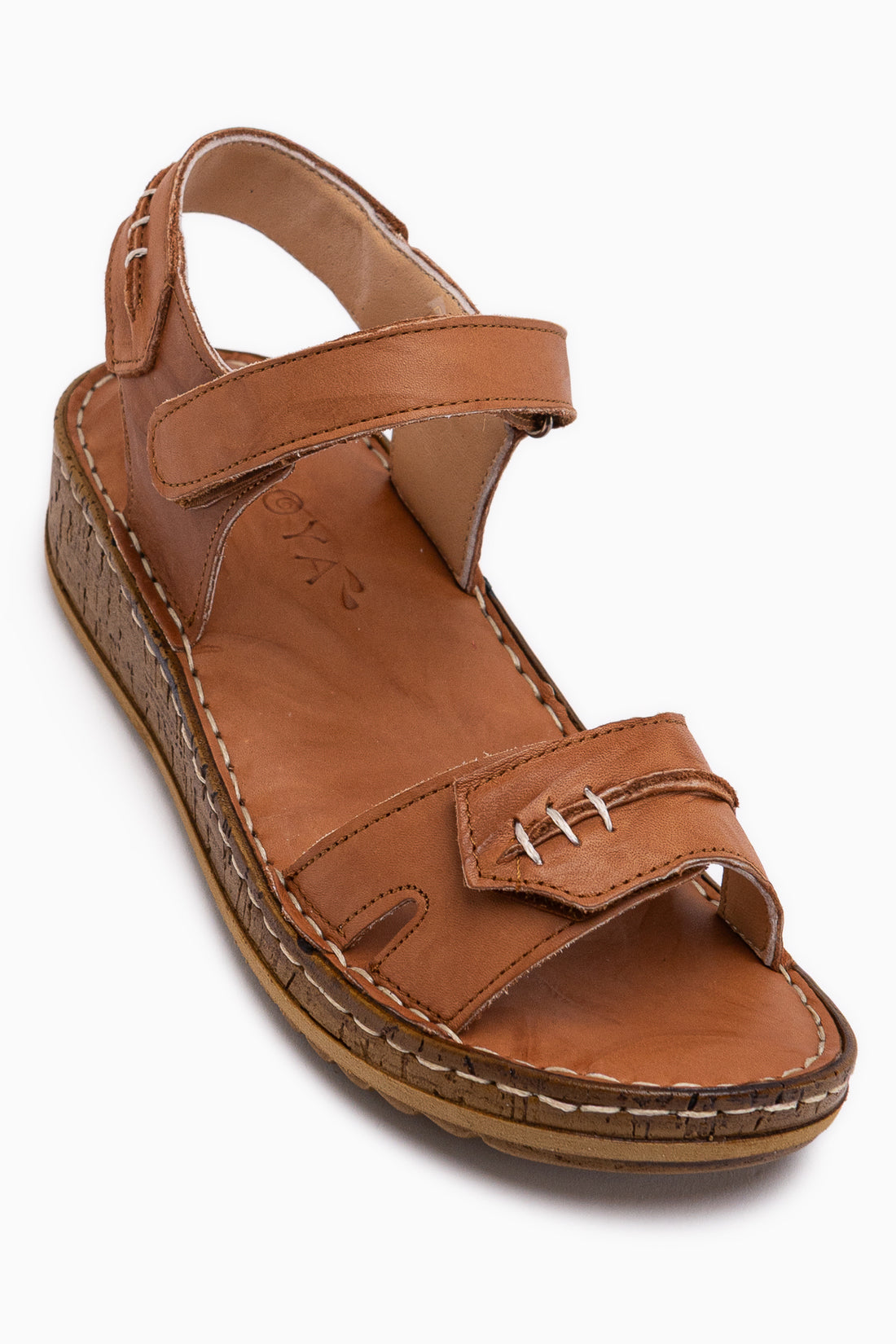 Cassie Hakiki Deri Taba Bej Topuklu Kadın Sandalet