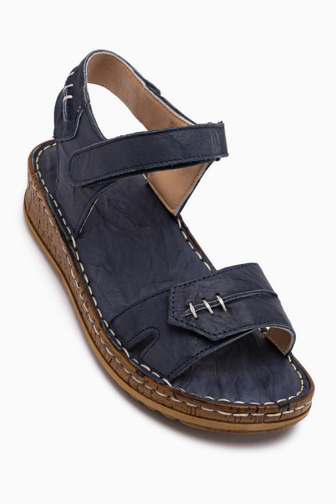 Leone Hakiki Deri Lacivert Kadın Sandalet