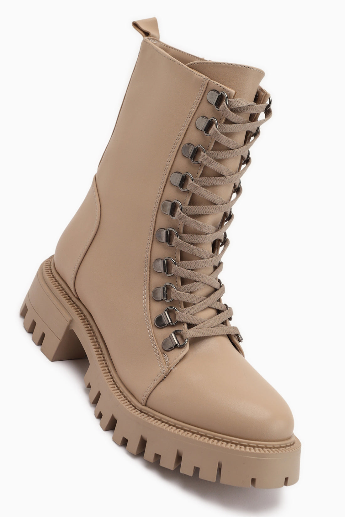 Caterine Bej Toka Detaylı Kısa Topuklu Çizme