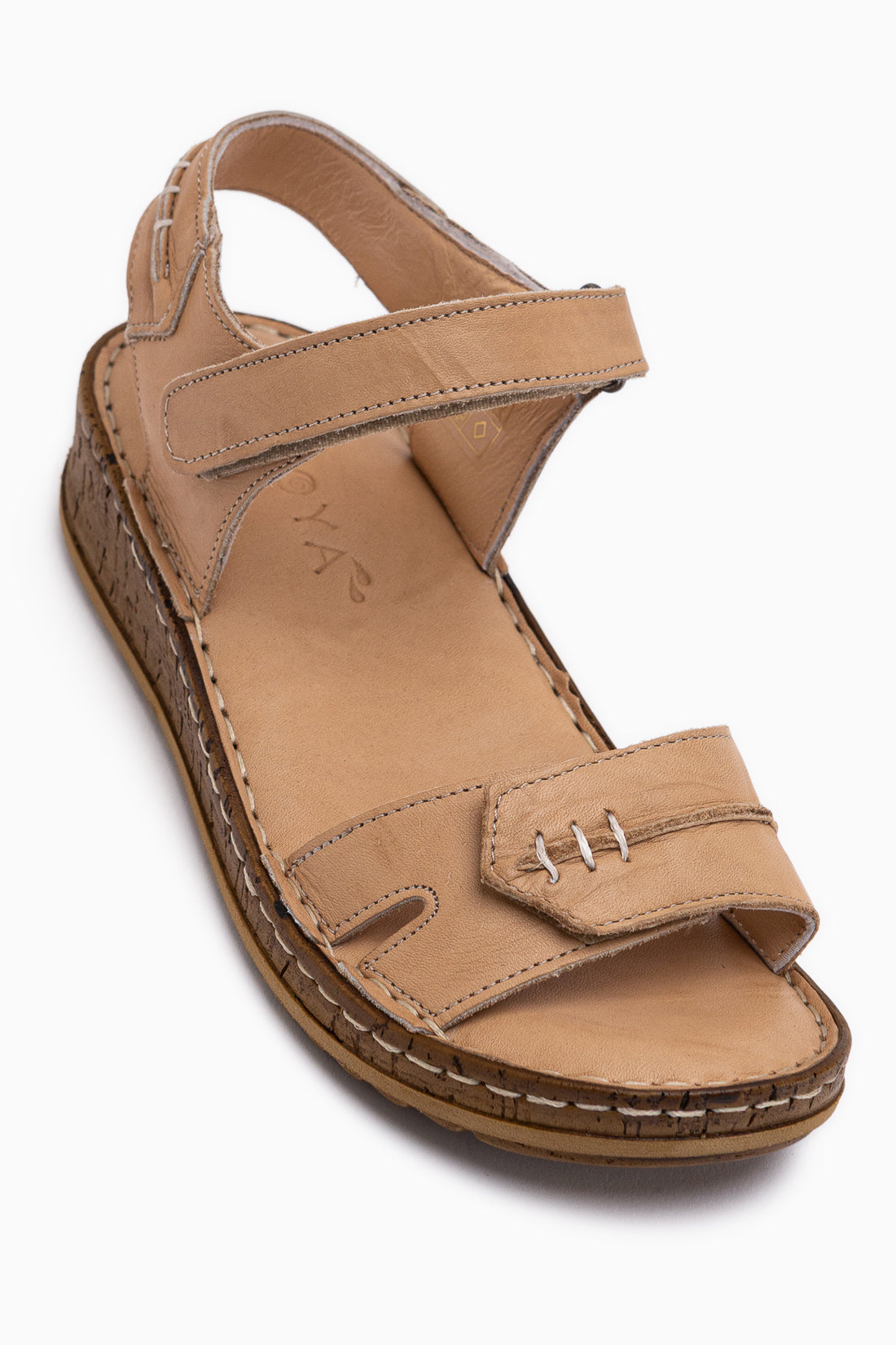 Kiera Hakiki Deri Bej Süet Kemerli Kadın Sandalet