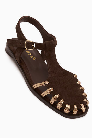 Lydia Hakiki Deri Kahve Süet Hasır Detaylı Kadın Sandalet
