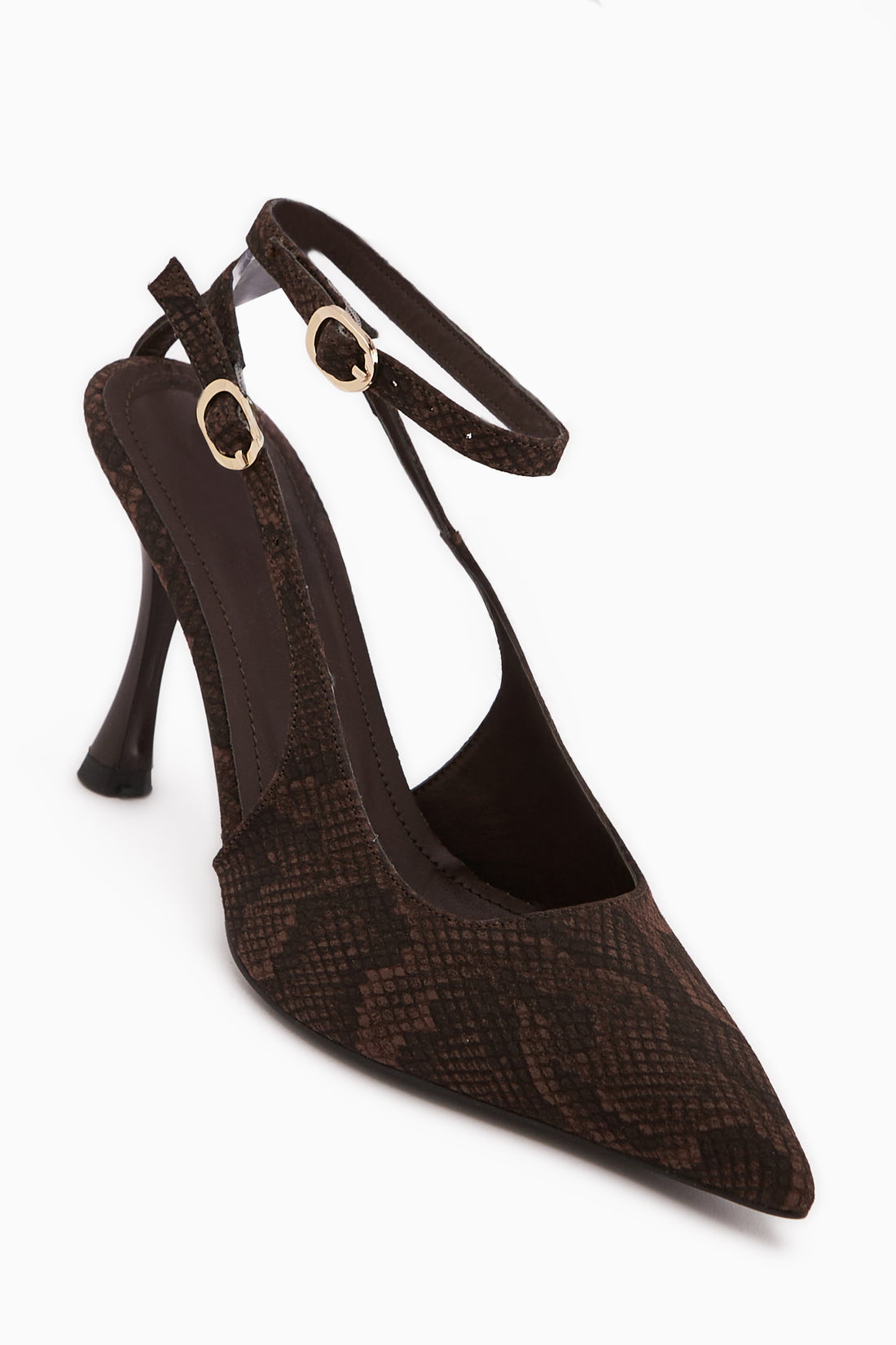 Jamie Kahve Yılan Desenli Bilekten Tokalı Kadın Topuklu Ayakkabı