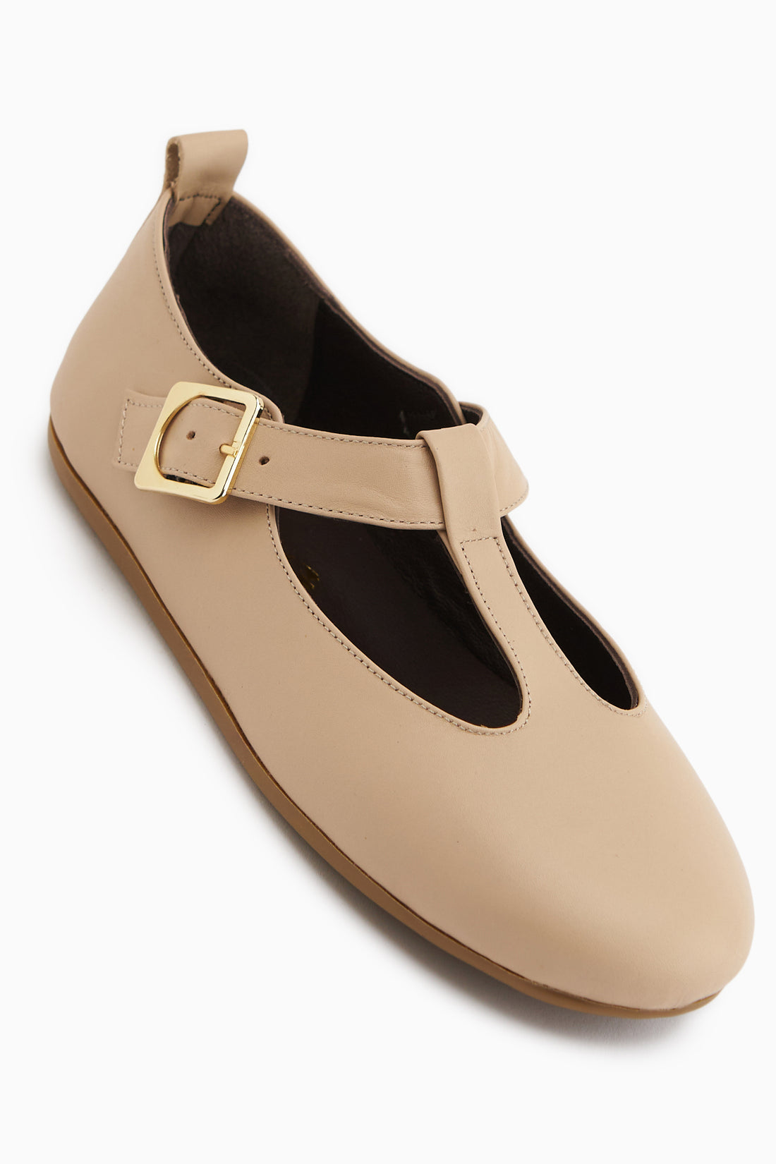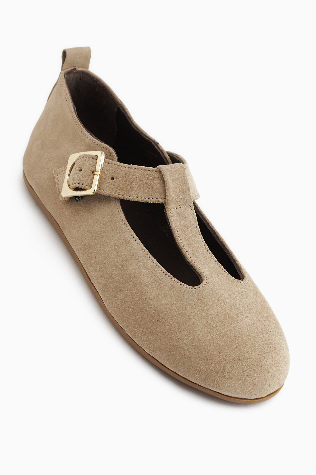 Danni Hakiki Deri Bej Süet Kemerli Kadın Babet