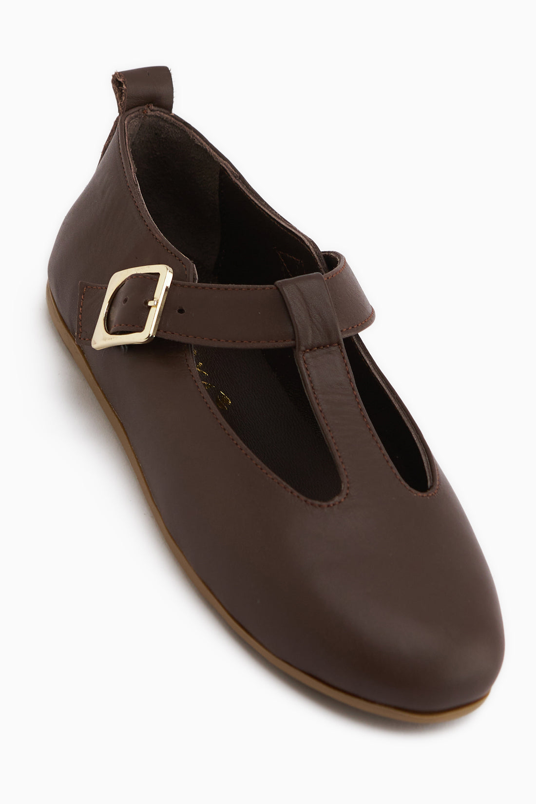 Danni Hakiki Deri Kahve Süet Kemerli Kadın Babet