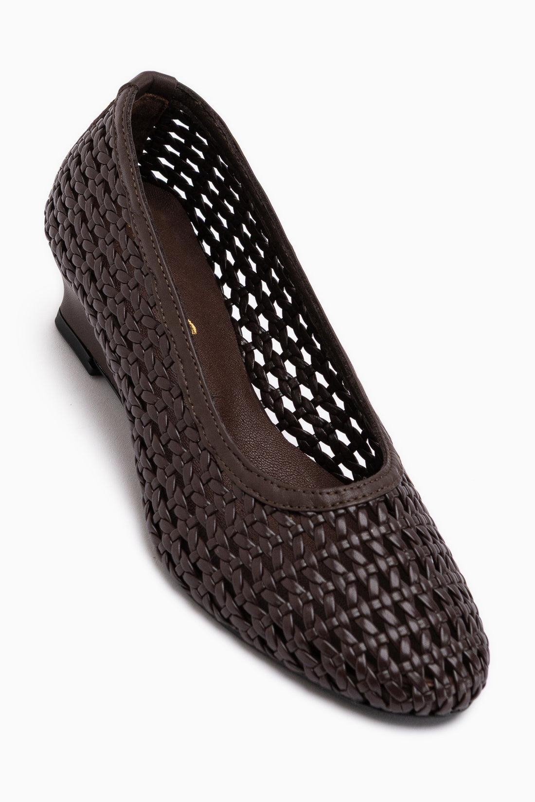 Viola Hakiki Deri Kahve Örgü Kadın Topuklu Ayakkabı
