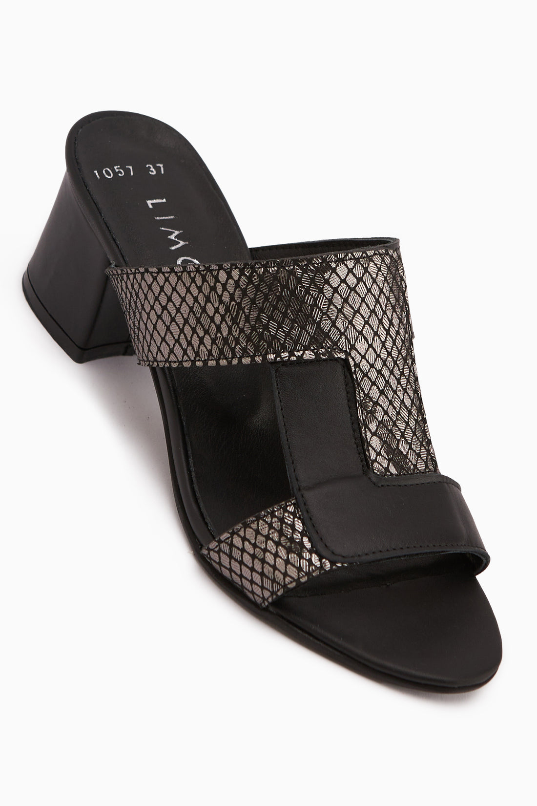 Helly Hakiki Deri Siyah Yılan Desenli Topuklu Kadın Terlik