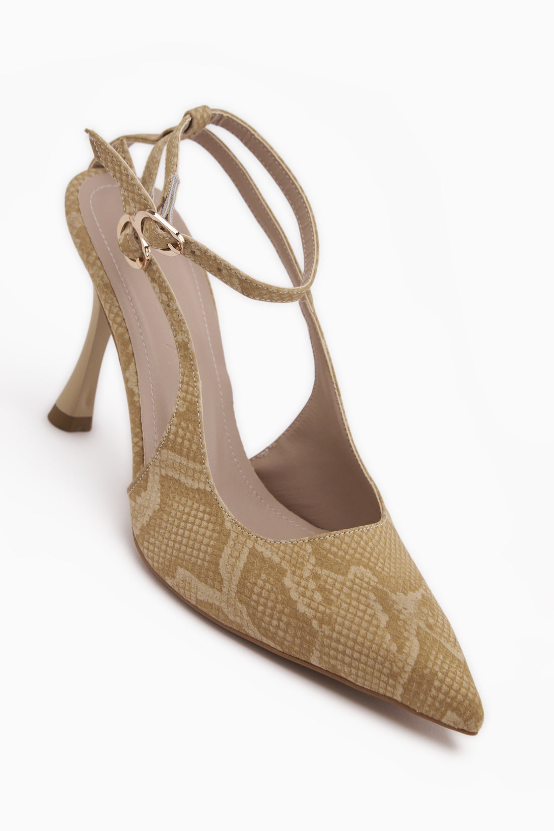Jamie Bej Yılan Desenli Bilekten Tokalı Kadın Topuklu Ayakkabı