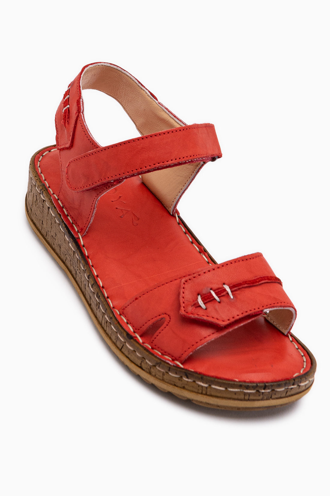 Leone Hakiki Deri Kırmızı Kadın Sandalet
