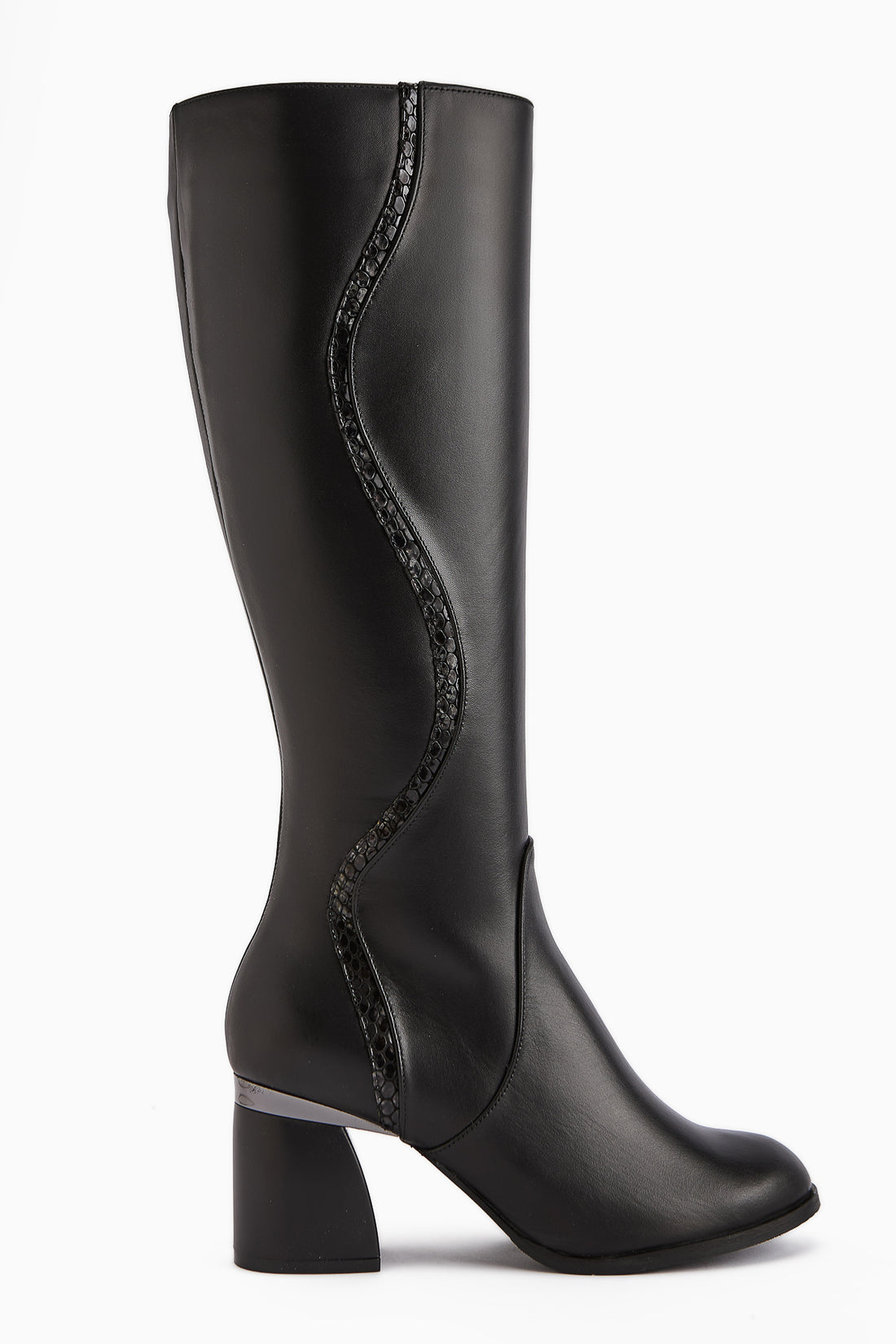 Kaylin Hakiki Deri Siyah Yılan Desenli Detaylı Kadın Topuklu Çizme