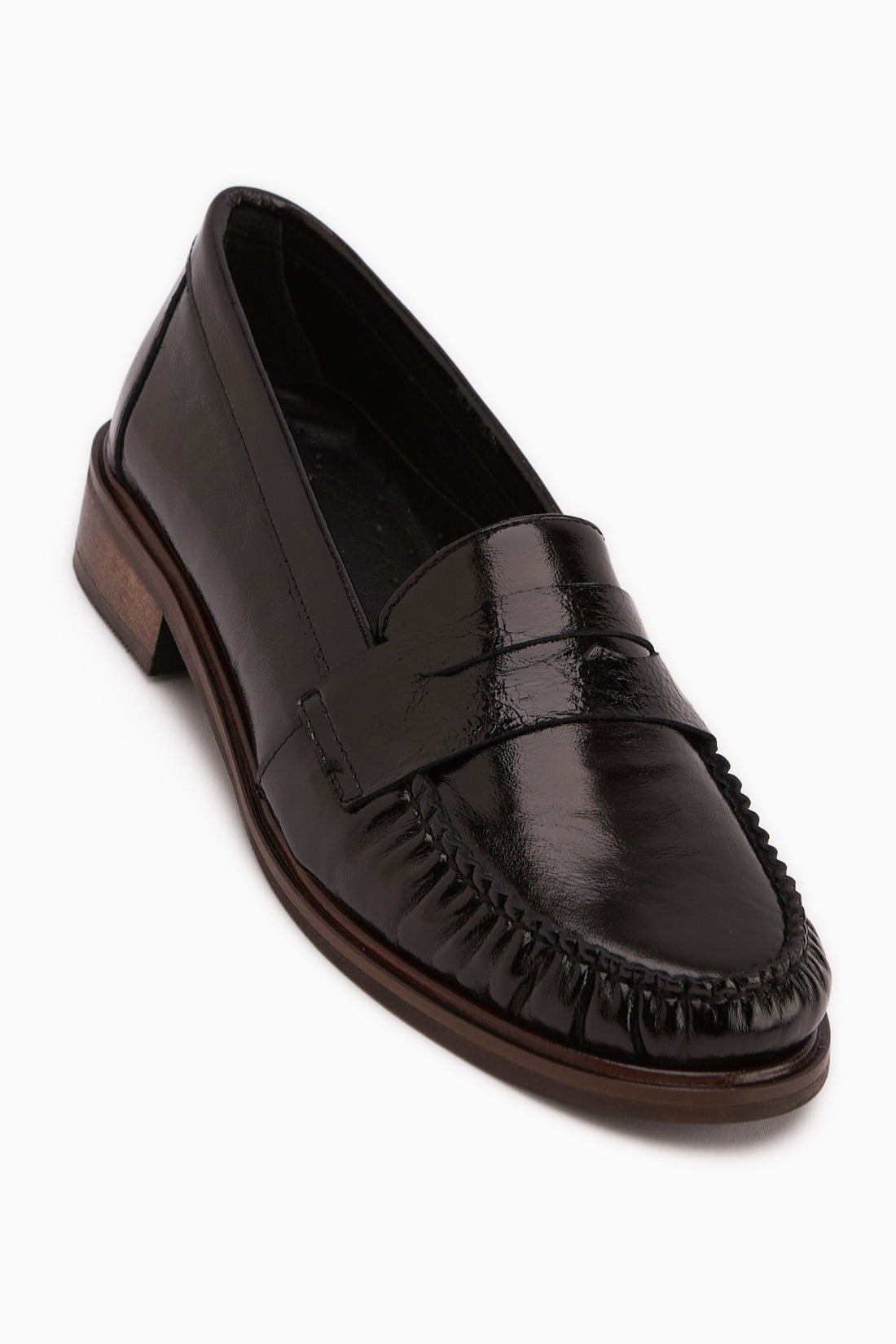 Roxne Siyah Kırışık Rugan Toka Detaylı Makosen Ayakkabı