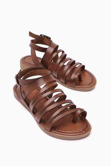 Ameli Hakiki Deri Kahve Çapraz Bantlı Babet