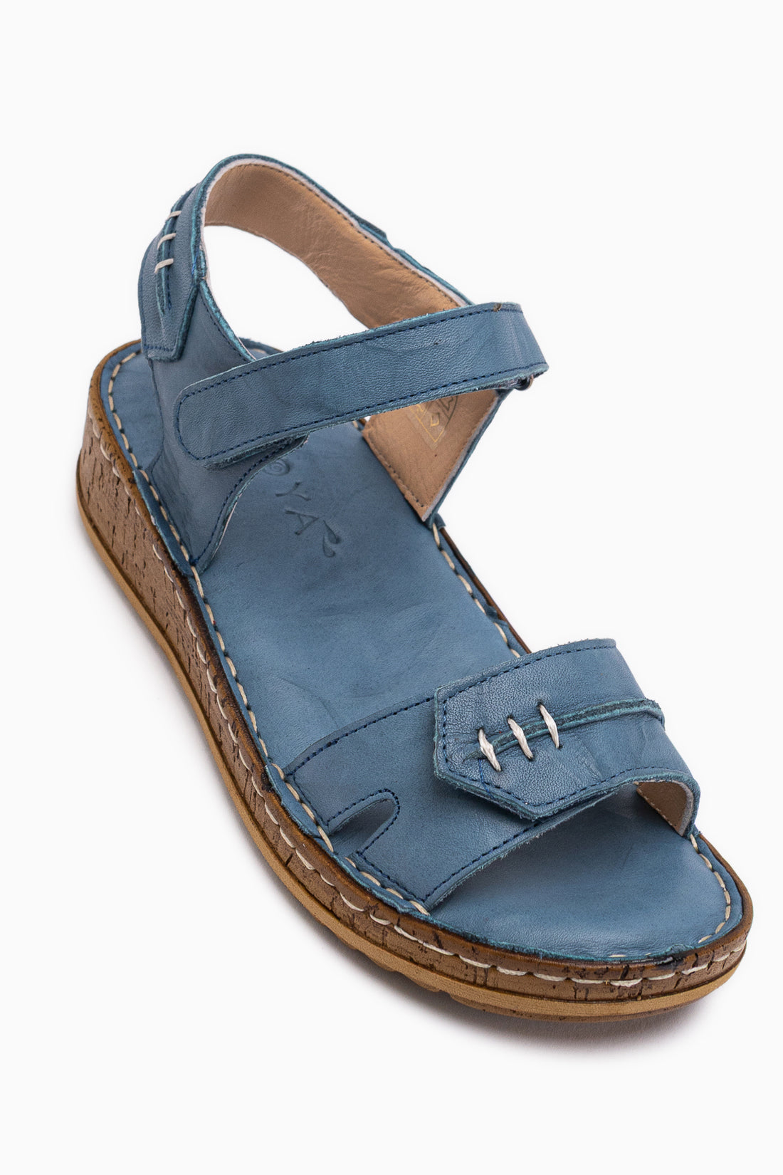 Leone Hakiki Deri Mavi Kadın Sandalet