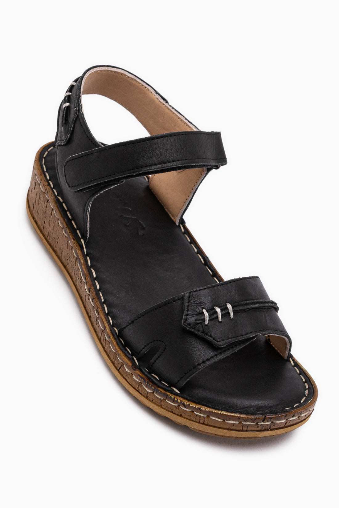 Leone Hakiki Deri Siyah Kadın Sandalet