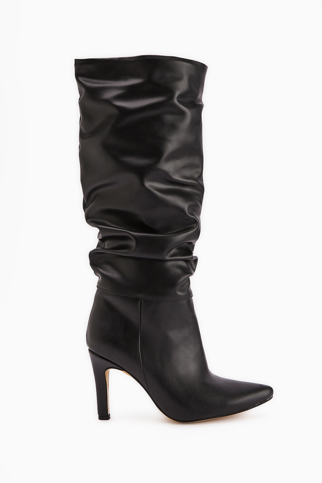 Leya Siyah Süet Topuklu Fermuarsız Çizme