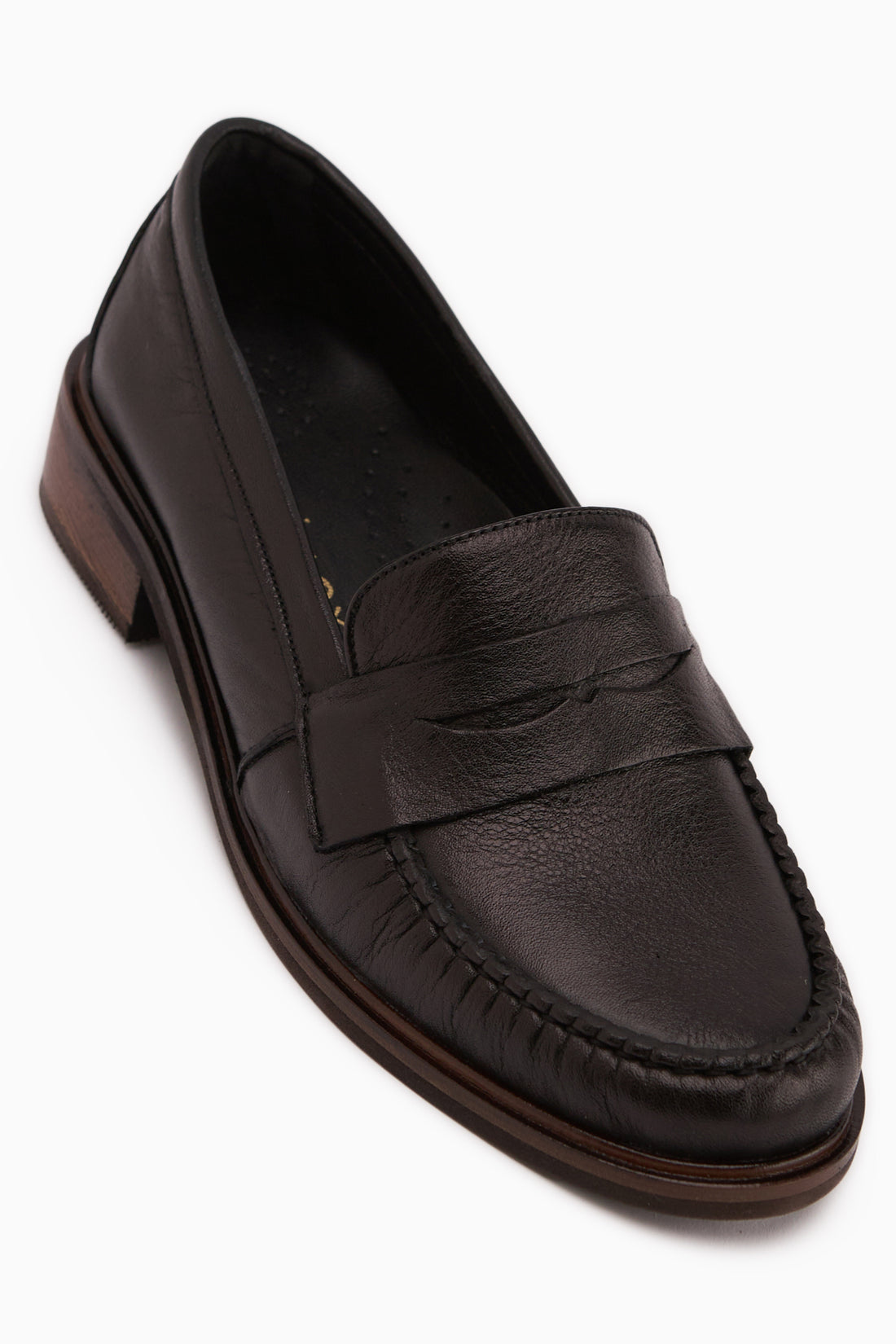 Fosia Hakiki Deri Siyah Penny Loafer Kadın Ayakkabı