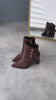 Kanako Kahve Aksesuarlı Fermuarlı Kısa Topuklu Çizme