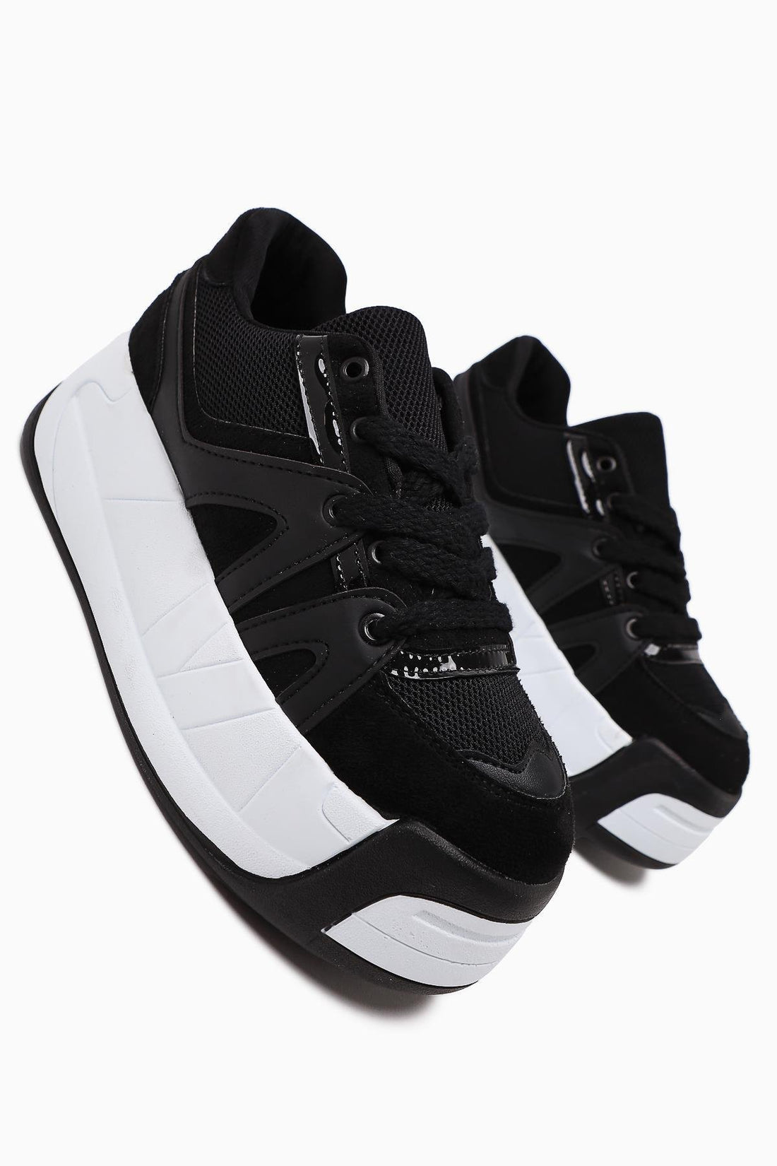 Daysi Siyah Bej Kalın Tabanlı Spor Ayakkabı Kadın Sneakers