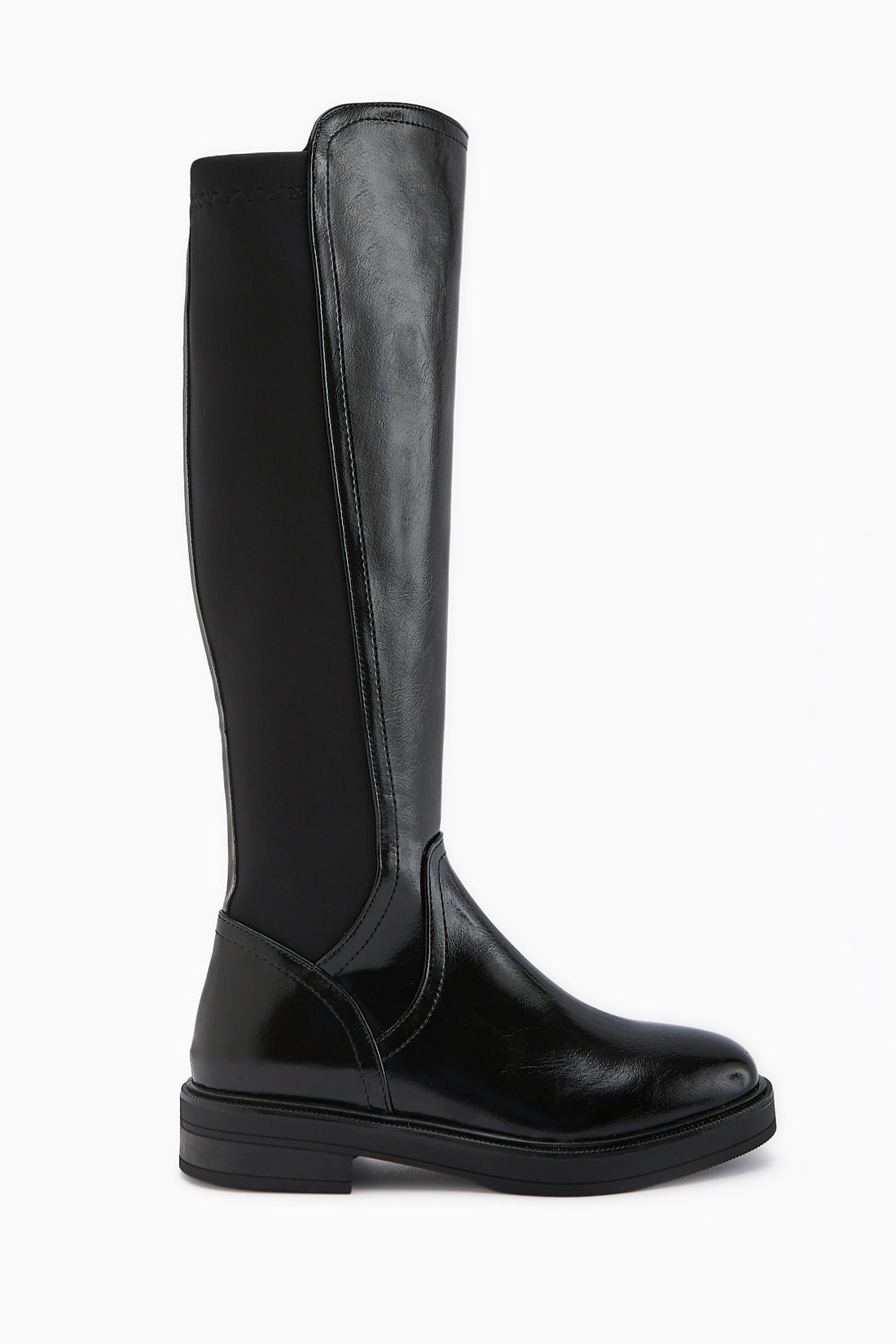 Ella Hakiki Deri Siyah Platform Topuklu Kadın Çizme