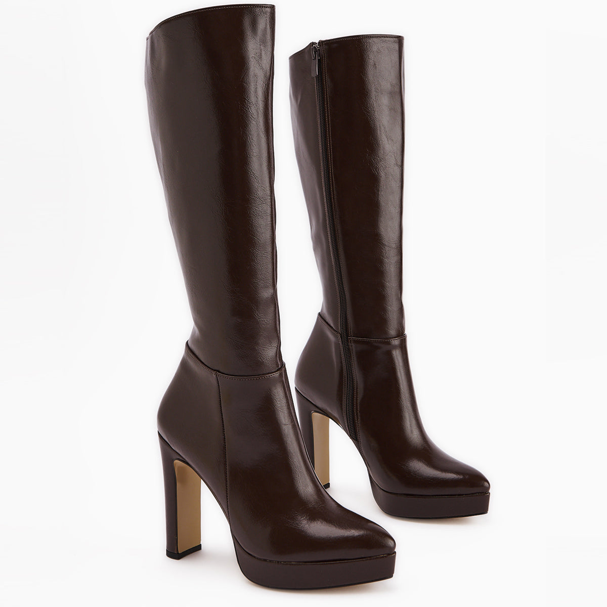 Ariya Kahve Platform Topuklu Fermuarlı Kadın Çizme