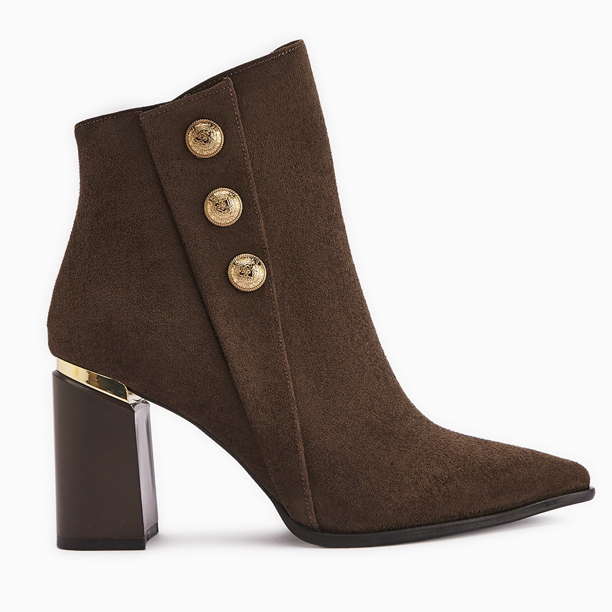 Mayvi Kahve Süet Toka Detaylı Topuklu Kadın Bot