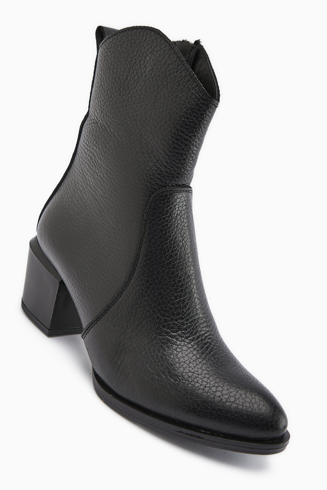 Ubax Hakiki Deri Siyah Topuklu Kadın Bot
