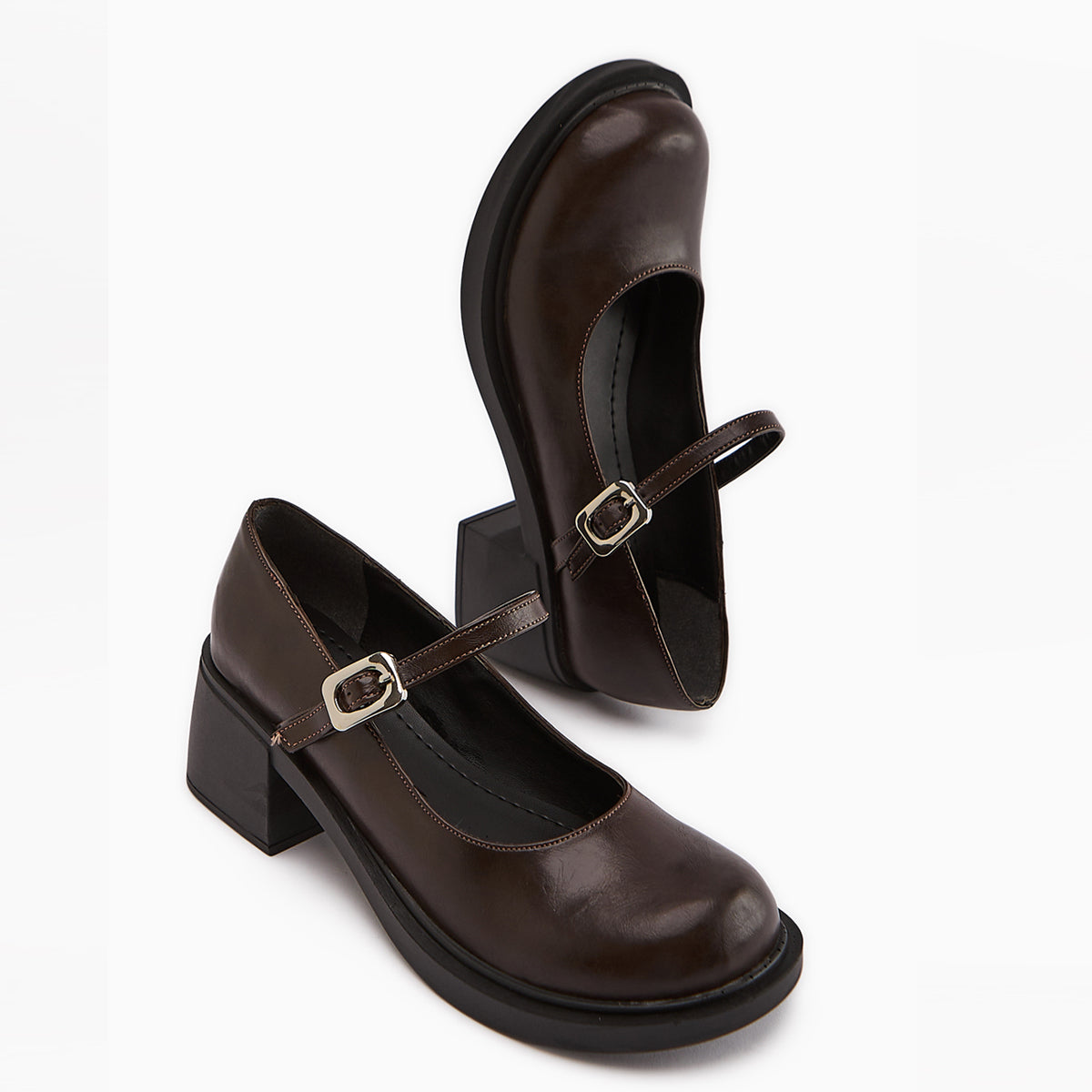 Lucy Kahve Kalın Topuklu Ayakkabı Kadın Stiletto