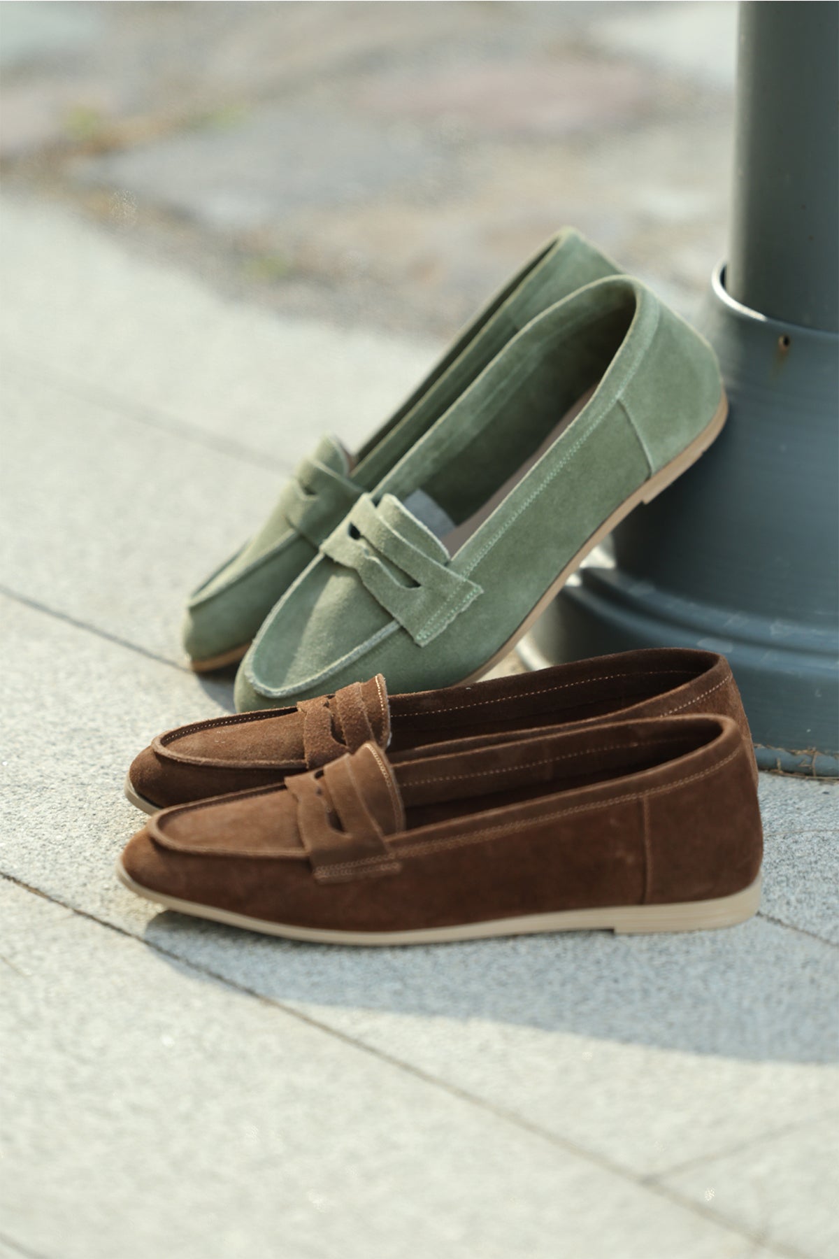 Solina Hakiki Deri Kahve Süet Makosen Ayakkabı Rahat Günlük Loafer