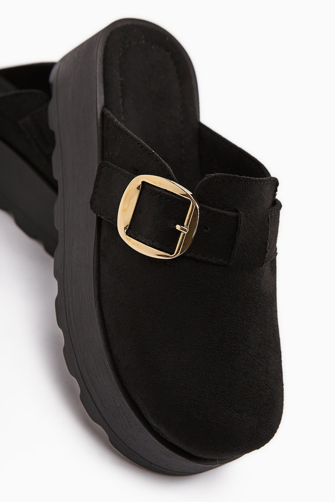 Clara Sİyah Süet Tokalı Kadın Terlik