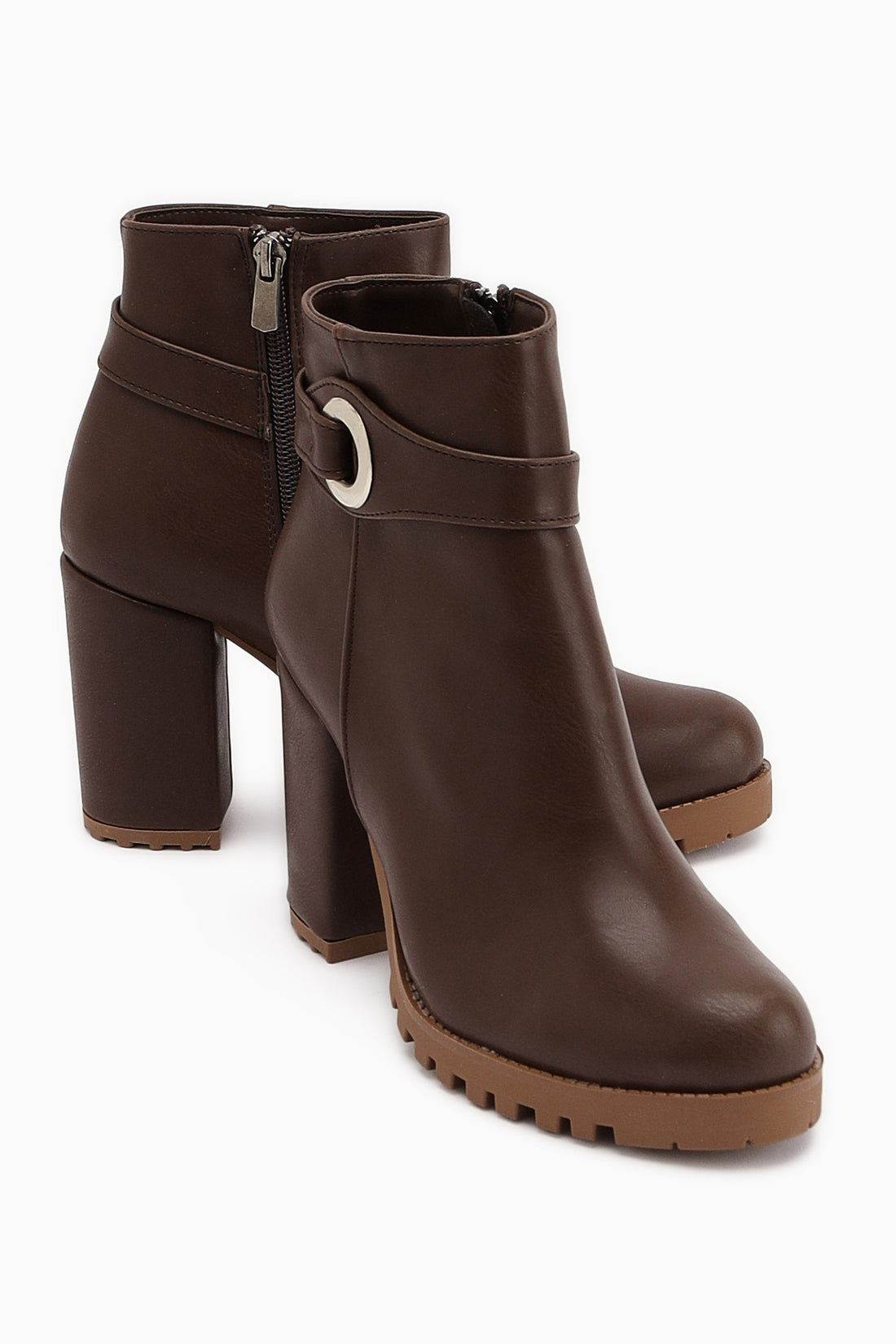 Destina Kahve Oval Burunlu Bilek Aksesuarlı Topuklu Bot