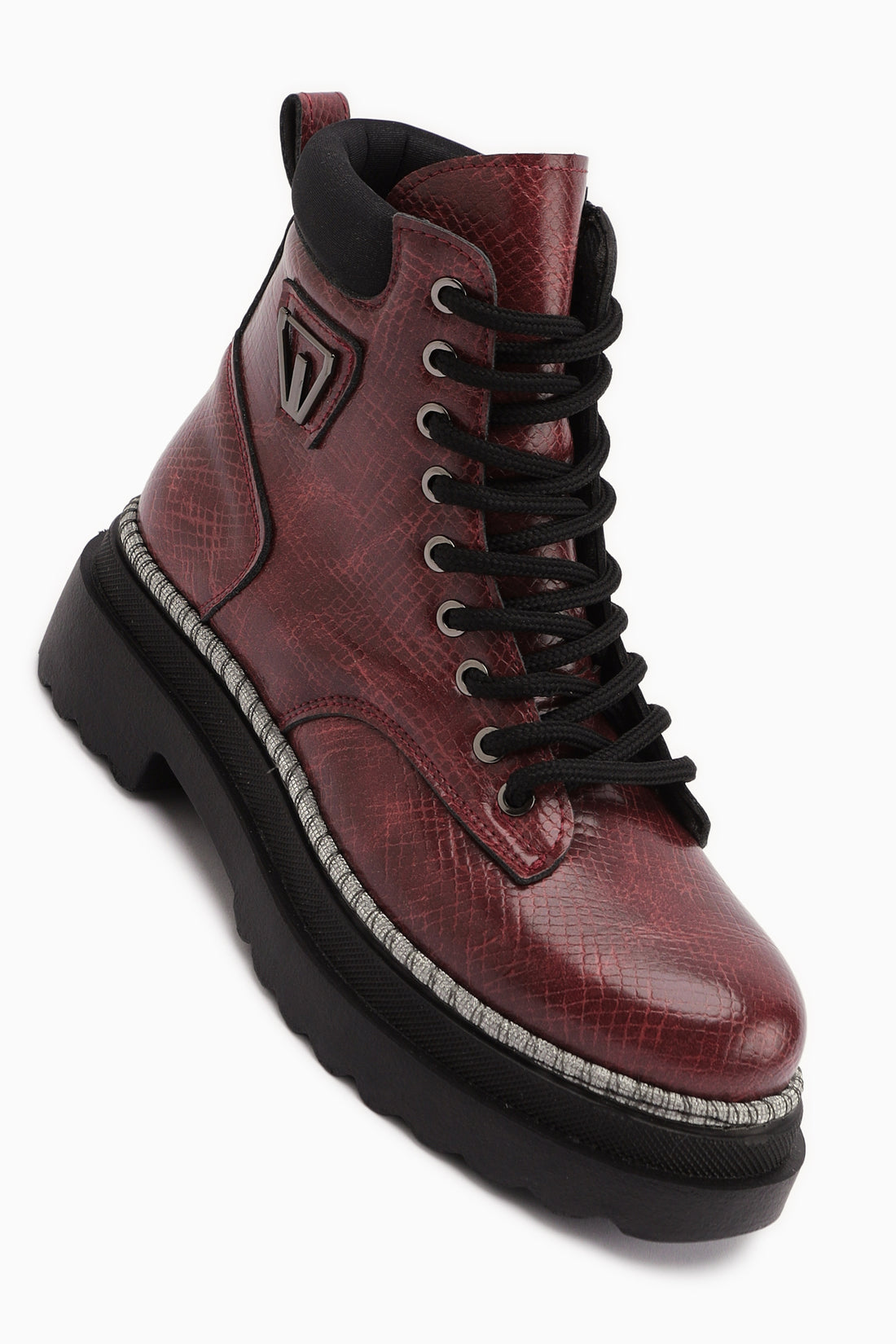 Amona Bordo Parlak Taş Detaylı Bağcıklı Bot