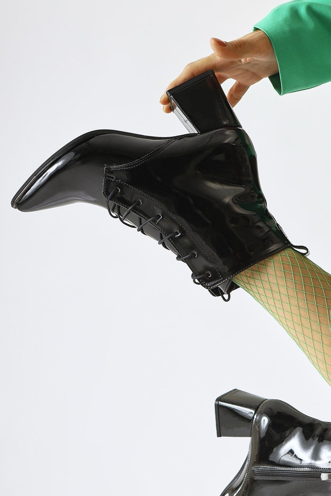 Kalaya Siyah Rugan Sivri Burunlu Fermuarlı Topuklu Bot
