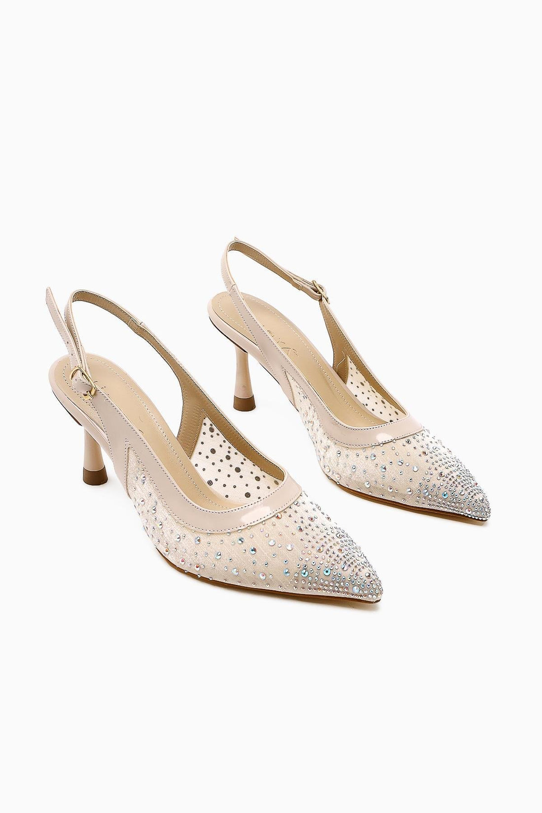 Kally Bej Transparan Kumaş Taş Detaylı Kadın Topuklu Ayakkabı