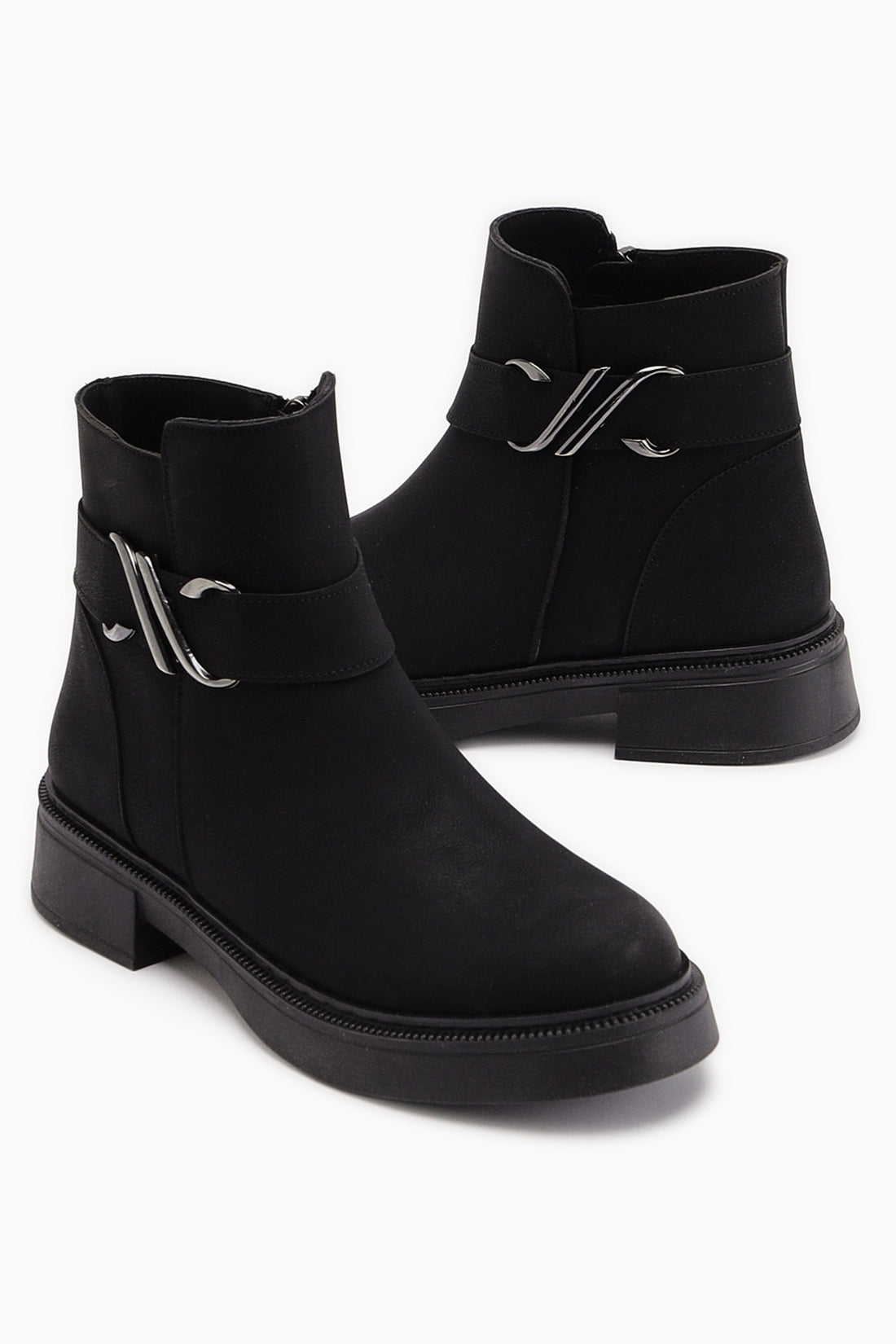 Birta Siyah Toka Detaylı Oval Burunlu Bot