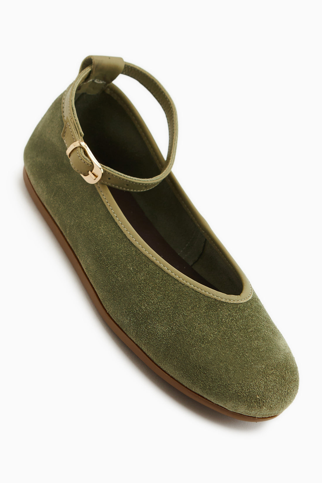 Danni Hakiki Deri Yeşil Süet Kemerli Kadın Babet