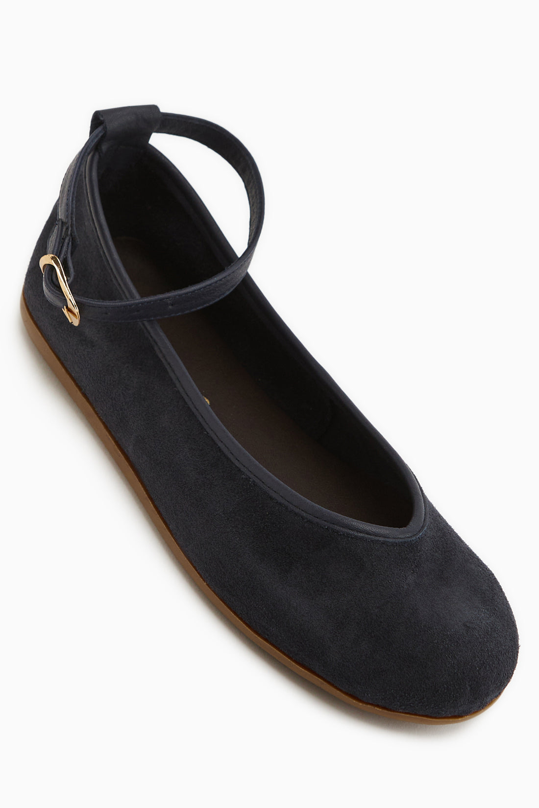 Jenin Hakiki Deri Koyu Lacivert Süet Kemerli Kadın Babet