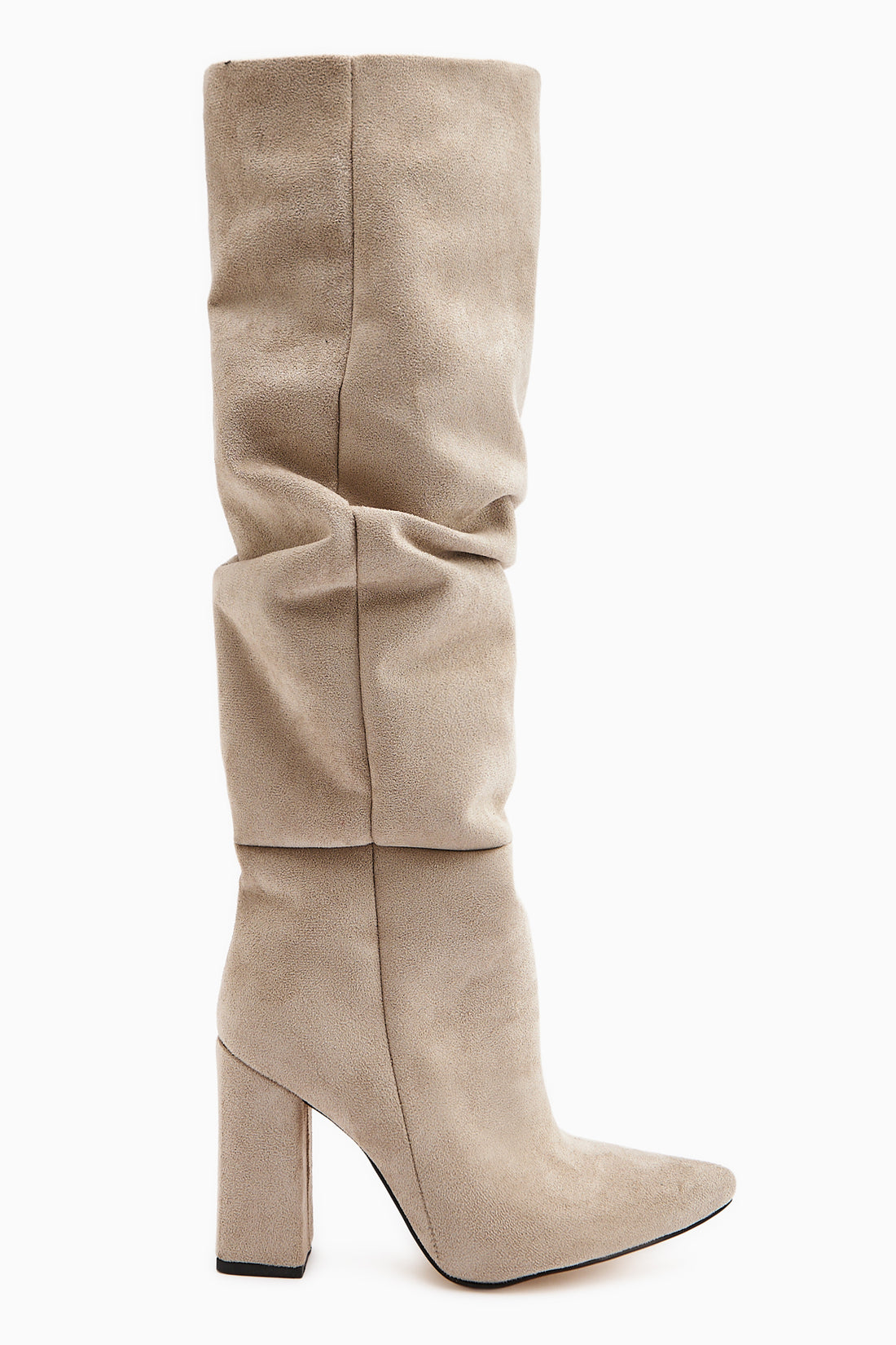 Loren Bej Süet Siveri Burunlu Yüksek Topuklu Dizaltı Çizme