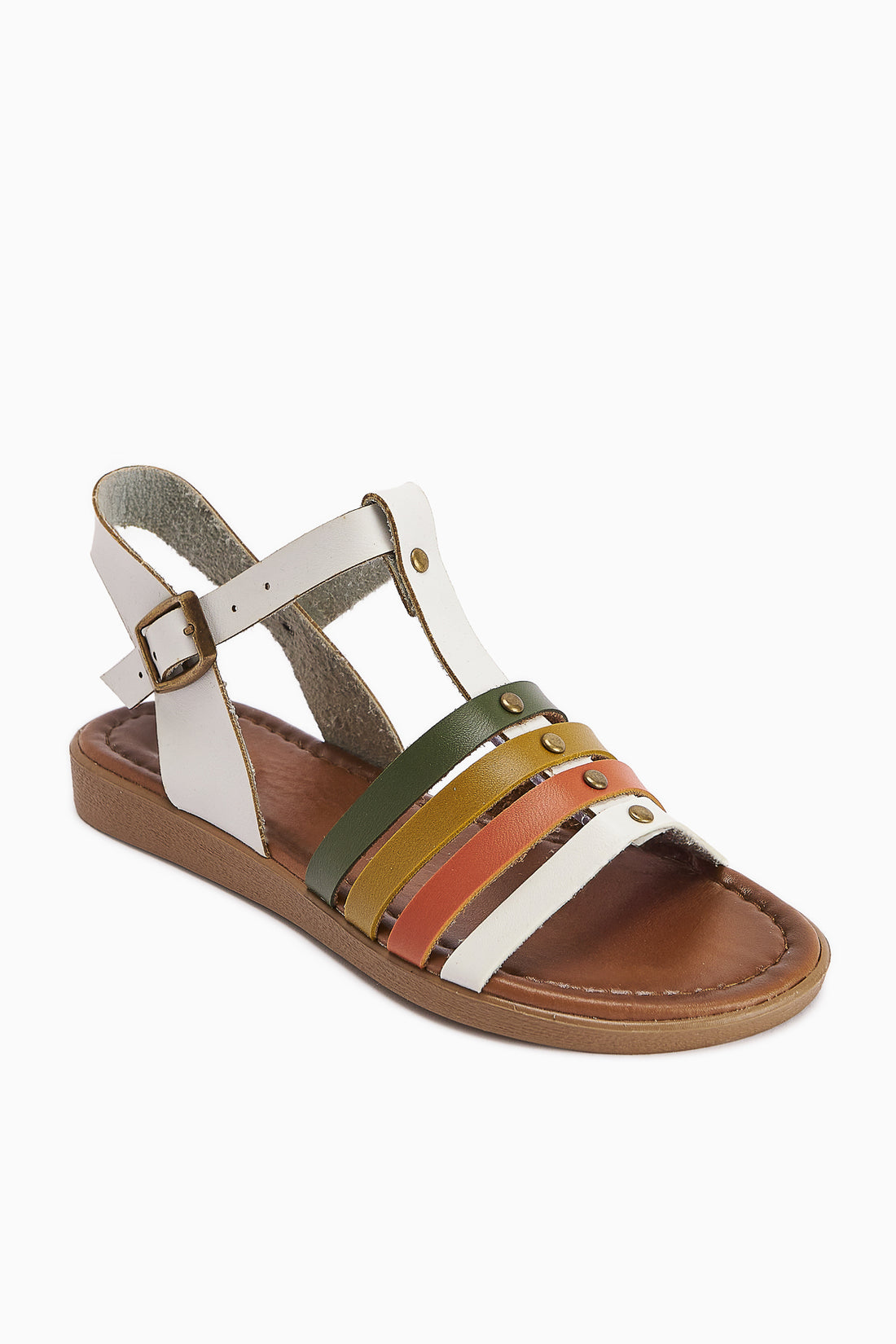Hakiki Deri Akira Beyaz Dört Bantlı Sandalet