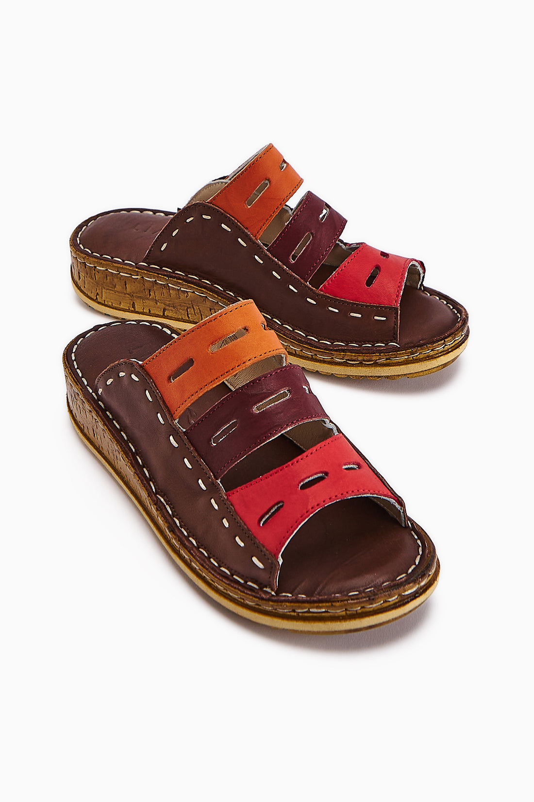 Hakiki Deri Mascha Turuncu Zımba Detaylı Gladyatör Sandalet