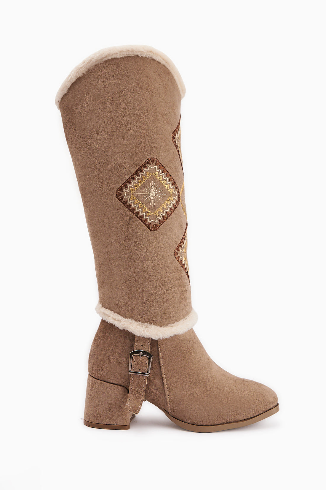 Hilka Vizon Süet Çıkarılabilir Konçlu Etnik Desenli Bot-Çizme