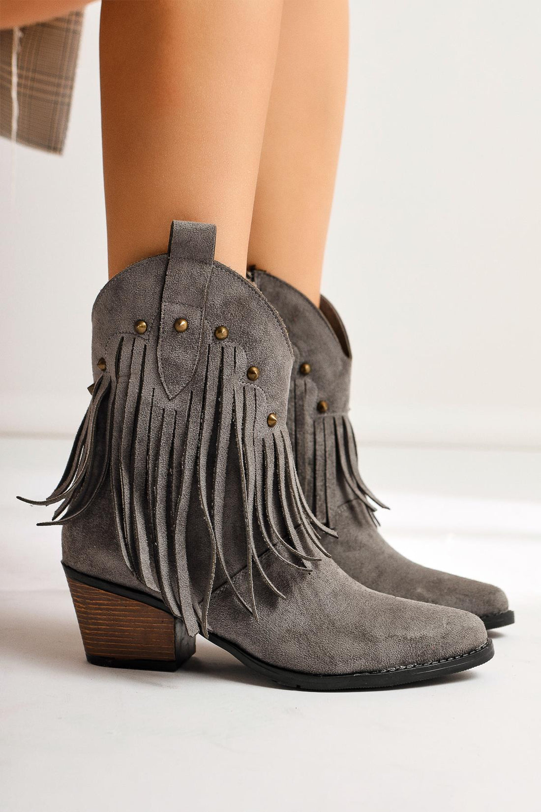 Lillebeth Gri Süet Püsküllü Zımba Detaylı Western Bot