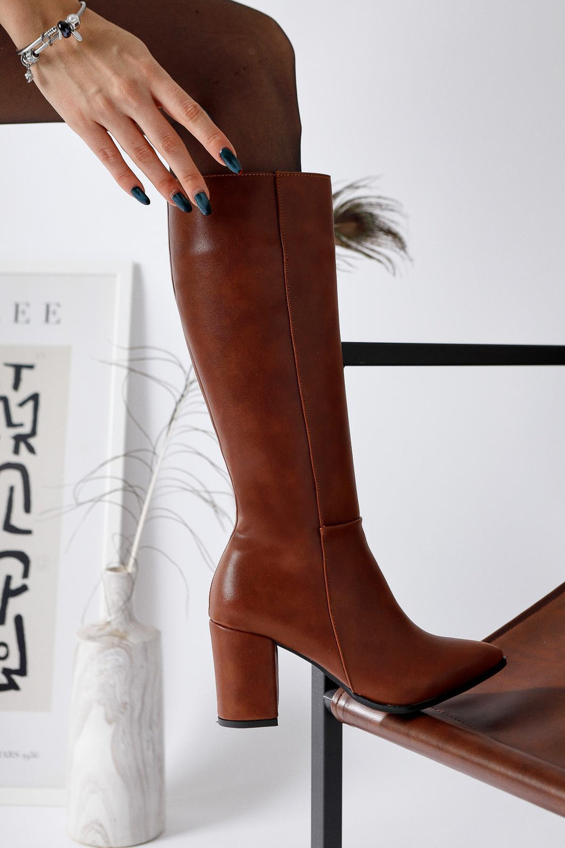 Tatum Taba Sivri Burunlu Orta Topuklu Çizme