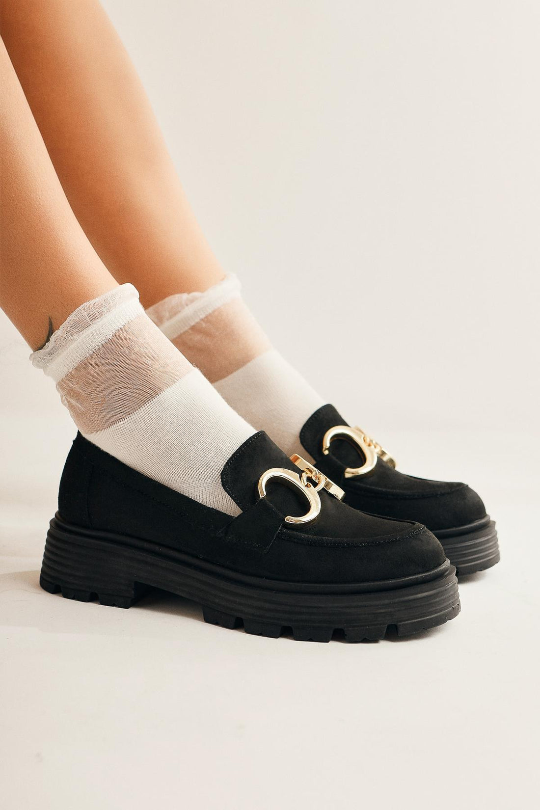 Renia Siyah Süet Toka Detaylı Oxford Ayakkabı