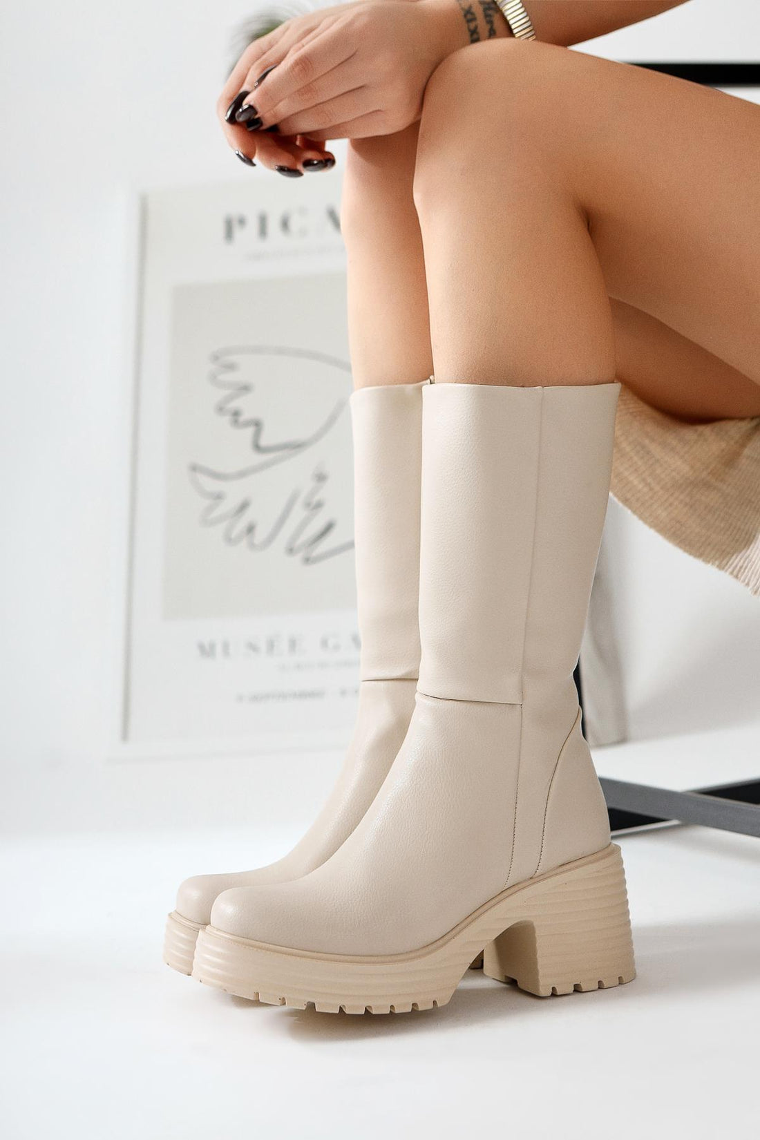 Escada Bej Kalın Tabanlı Fermuarlı Çizme