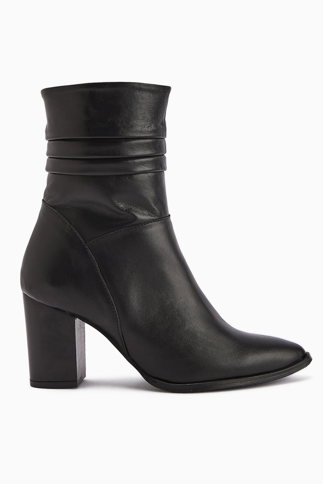 Tamina Hakiki Deri Siyah Sivri Burunlu Topuklu Kadın Bot