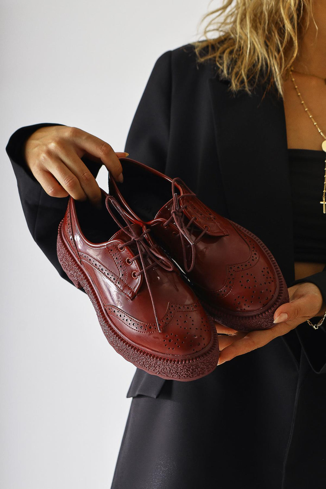 Rossy Bordo Rugan Oval Burunlu Lazer Kesim Günlük Ayakkabı