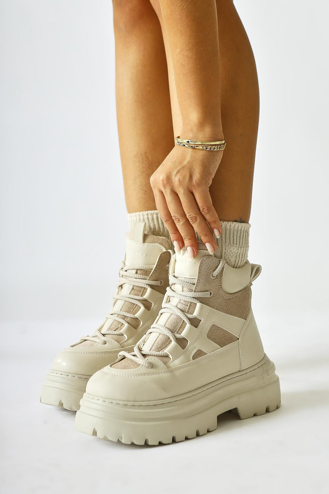 Kindra Bej Süet Detaylı Yüksek Taban Spor Bot